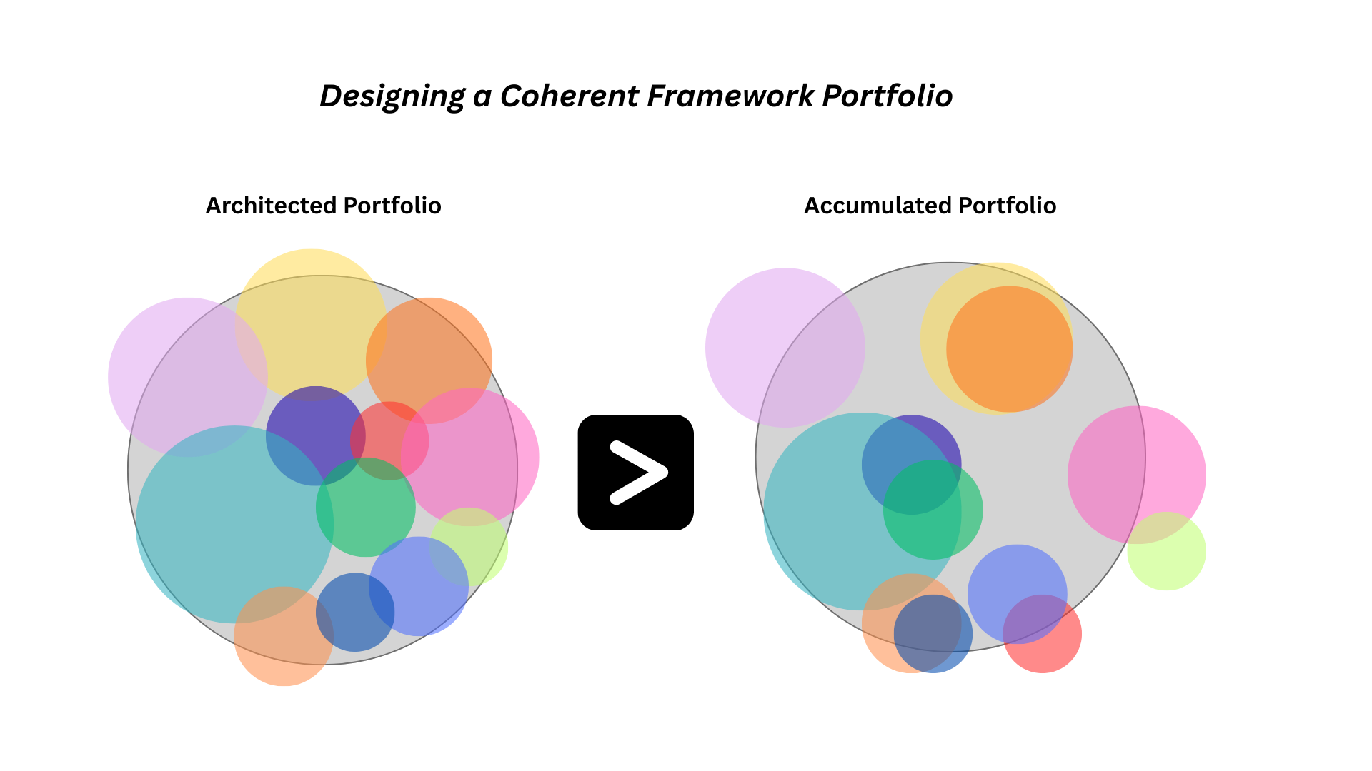 Figure: Conceptual illustration of Framework Portfolio Architecture. Left: Architected Portfolio. Right: Accumulated Portfolio.